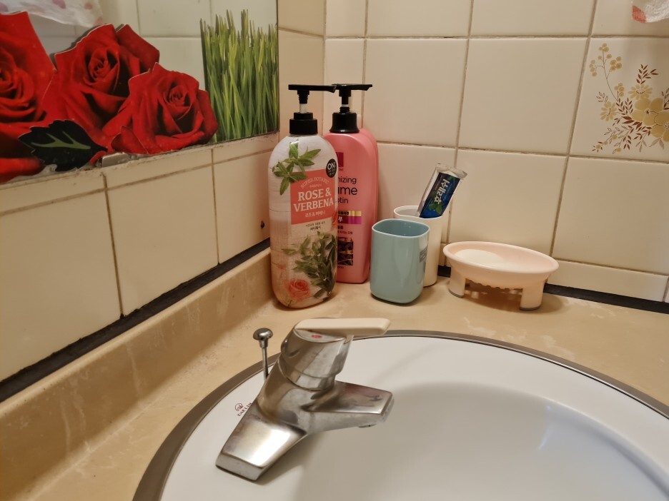 화장실에는 꽤 넓은 욕조도 구비되어 있으며, 샴푸, 린스, 바디워시, 치약 등이 기본으로 제공되는 이곳은 전반적으로 하숙집, 시골 큰집과 같은 정겹지만 깔끔한 모습입니다~