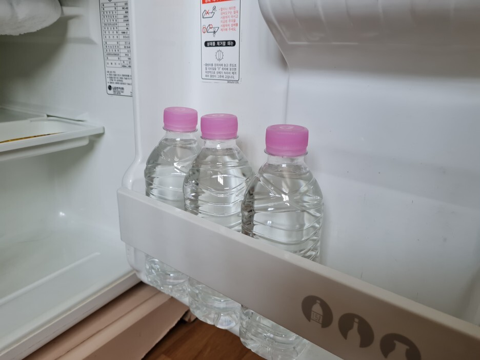 냉장고에는 기본 500ml 생수 3개와 믹스커피도 제공하고 있습니다.