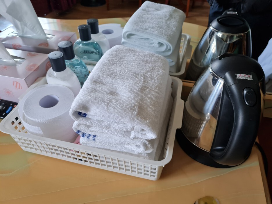건물 입구 1층에서 사장님의 사무실이 있어, 손님이 도착하면 직접 방 열쇠와 칫솔을 제공하며 체크인하는 시스템입니다.